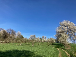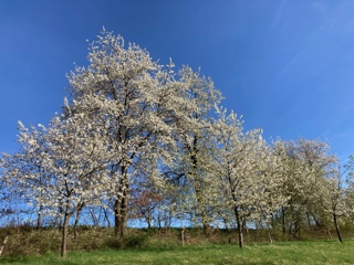 Immer wieder wunderschön und einladend, herzerfüllend und duftend blühen die Bäume der StreuObstWiese der Grubhof-Brennerei. Den dauerhaft sommerhaften Temperaturen geschuldet standen dieses Jahr schon sehr früh viele Bäume gleichzeitig in Blüte. Ein Meer aus unnachahmlich berauschenden Düften produzierten die unterschiedlichsten Kirsch-, Zwetschgen- und Pflaumensorten, Schlehen und Pfirsichbäumchen. Apfel- und Quittenbäume stehen schon "in den Startlöchern" und ihre Blüten sind kurz vorm Öffnen...